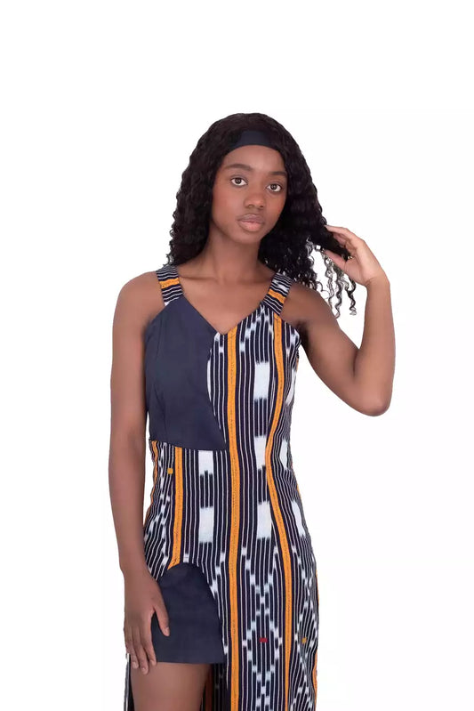 Prix habituel €70,00Prix habituelPrix unitaire / parPrix promotionnel €70,00Robe longue multicolore en pagne Baoulé de la Côte d'Ivoire. Fait à la main