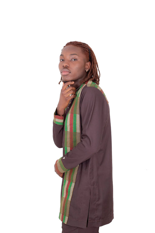Prix habituel €110,00Prix habituelPrix unitaire / parPrix promotionnel €110,00Ensemble marron pour homme en pagne tissé Kente du togo. Pagne tissé à la main.